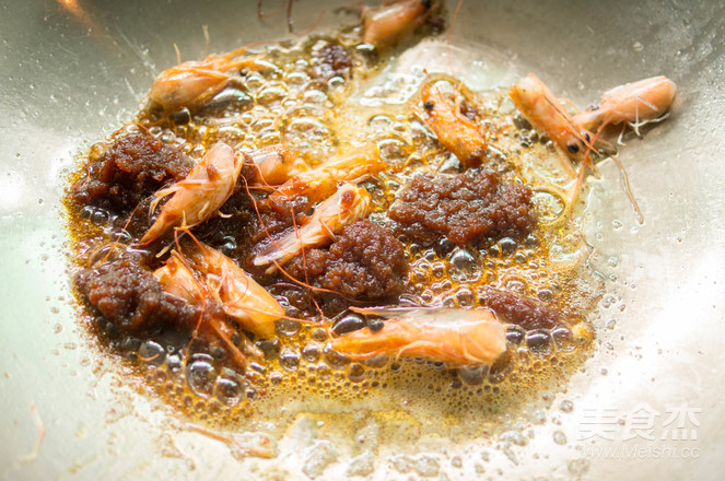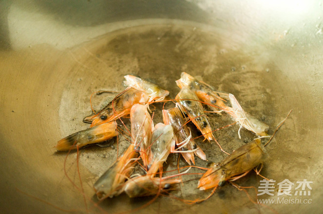 2.鮮蝦洗凈去蝦線,蝦頭揪下用少許油煸炒至出蝦油