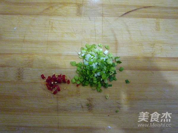 蒸豆腐的時(shí)候,小米椒和香蔥分別切小圈