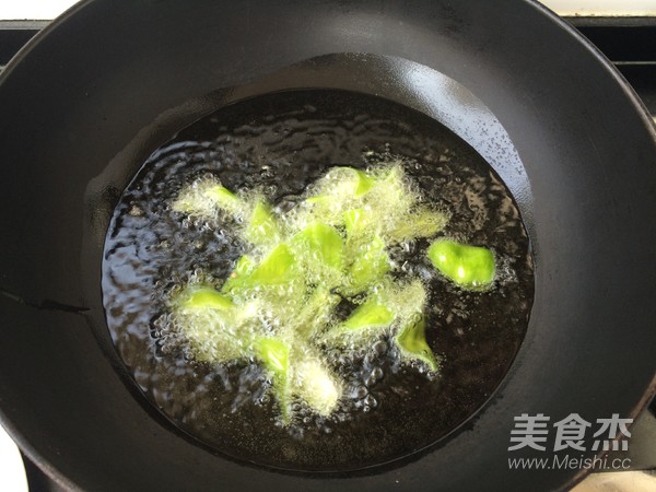 2、青椒過油要迅速,片刻就出鍋,保持青椒的顏色不變
