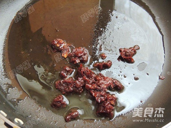 鍋中放入油,放入郫縣豆瓣醬炒香