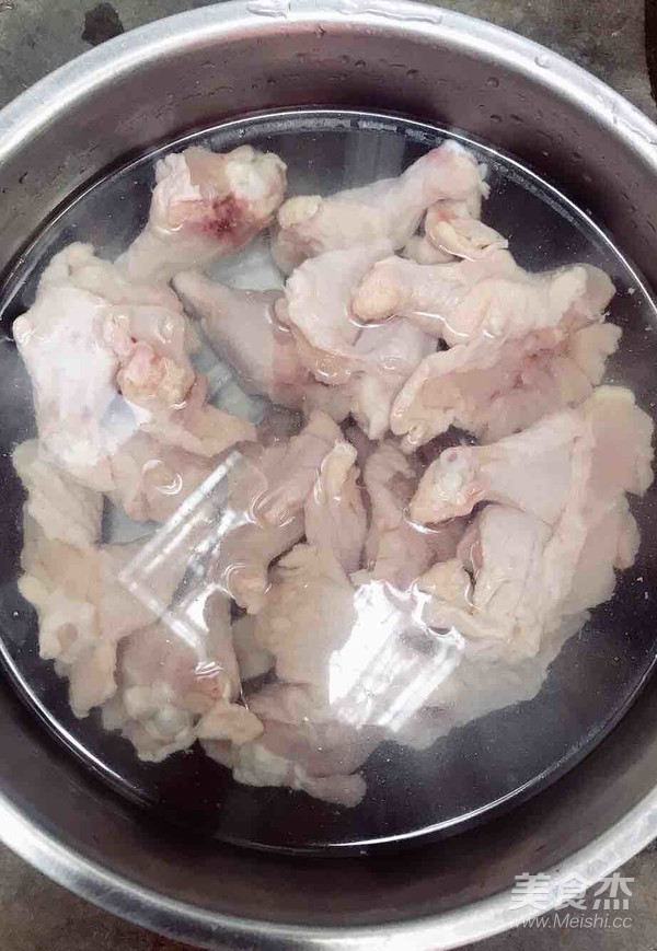 ?雞翅根放入清水中浸泡一小時解凍,中間換兩次水,去除腥味