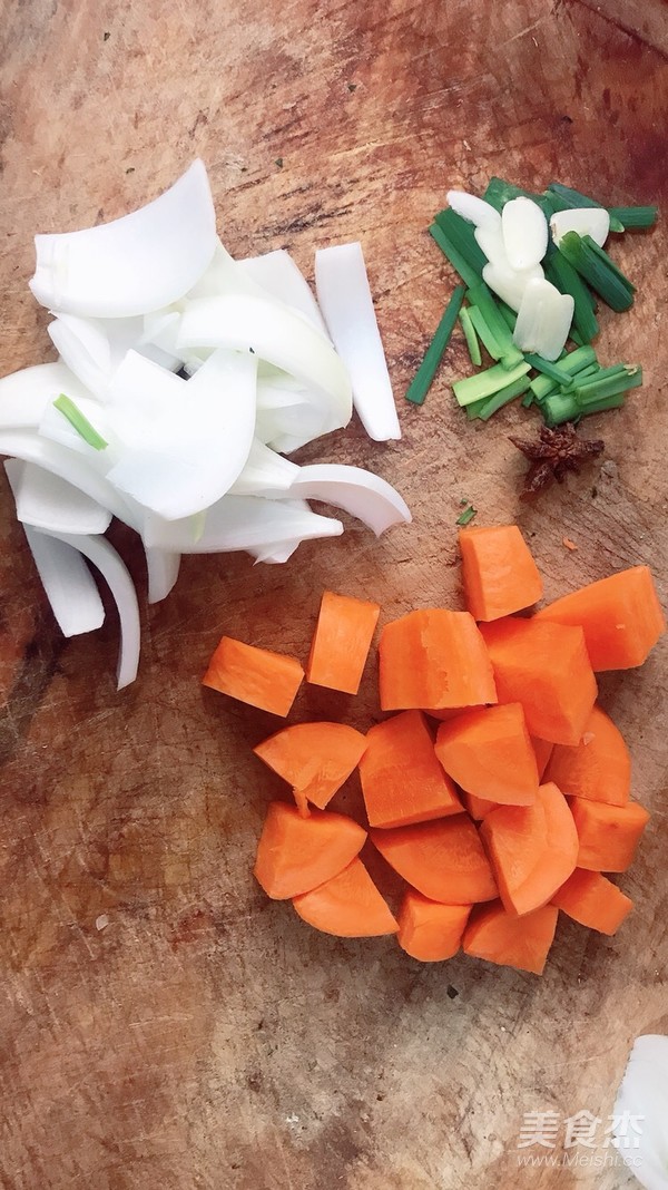 ?圓蔥、胡蘿卜切塊,大蒜切片,備用