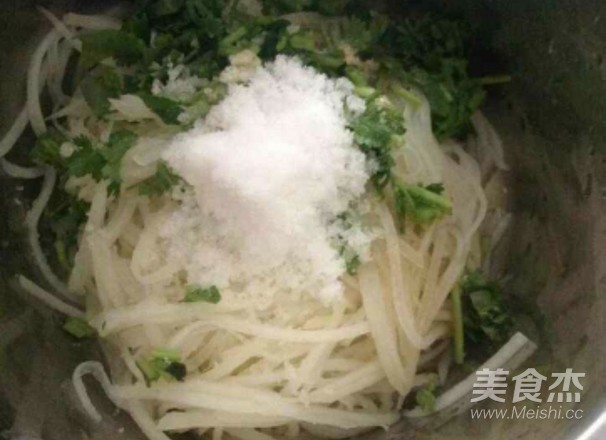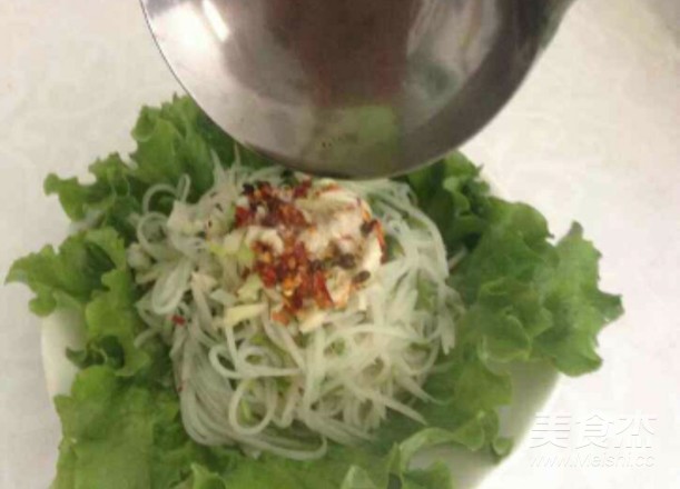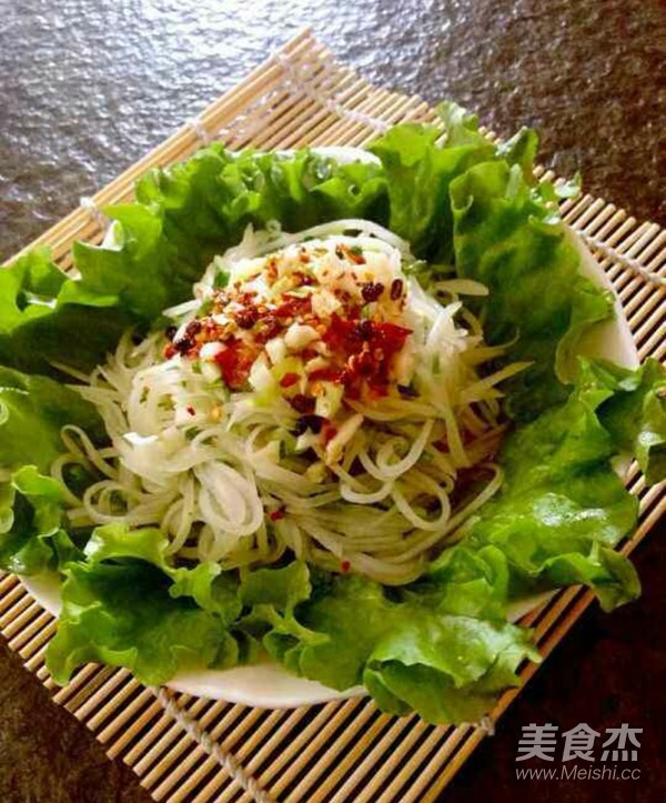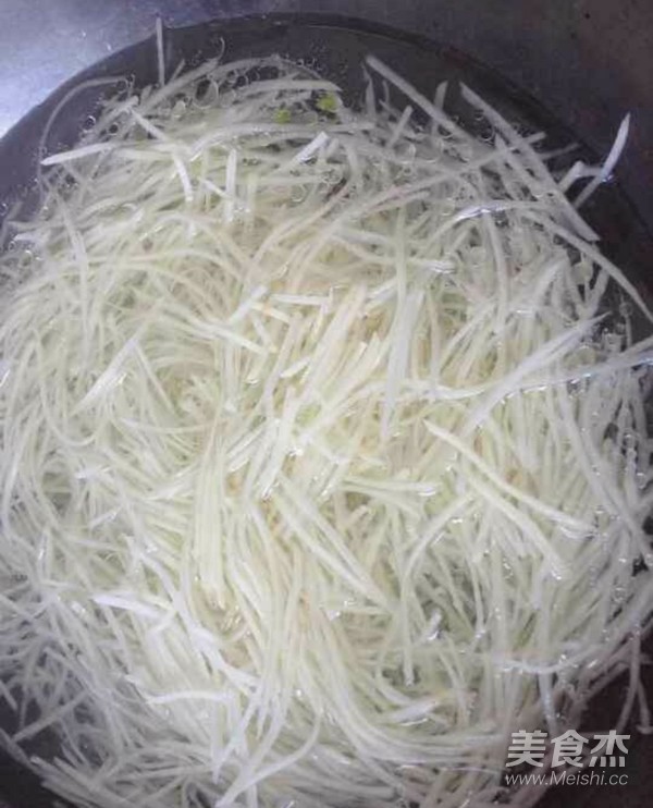 切絲,用開水焯熟。開鍋后煮3分鐘就可以熟。
