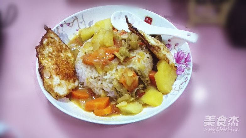 如果喜歡做造型 可以拿個小碗先盛了飯倒扣過來 淋上煮好的咖喱 加兩個荷包蛋