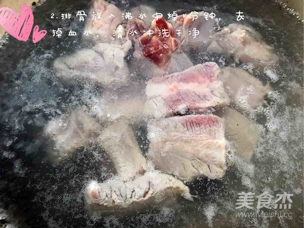 排骨放入沸水中,焯1分鐘,后用清水沖洗干凈