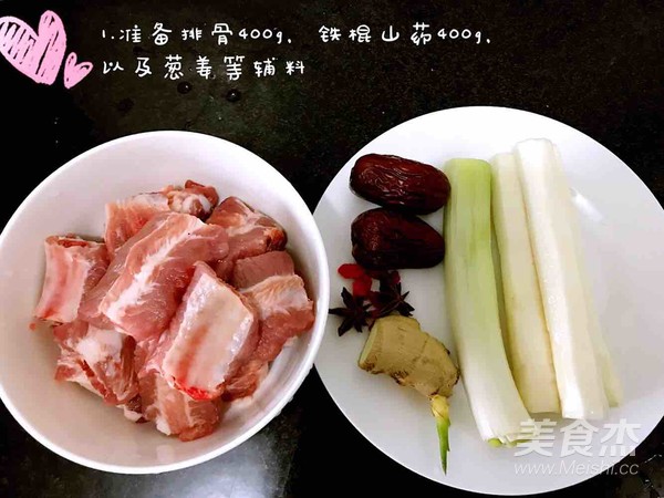 準(zhǔn)備排骨400g,鐵棍山藥400g去皮,蔥姜等輔料