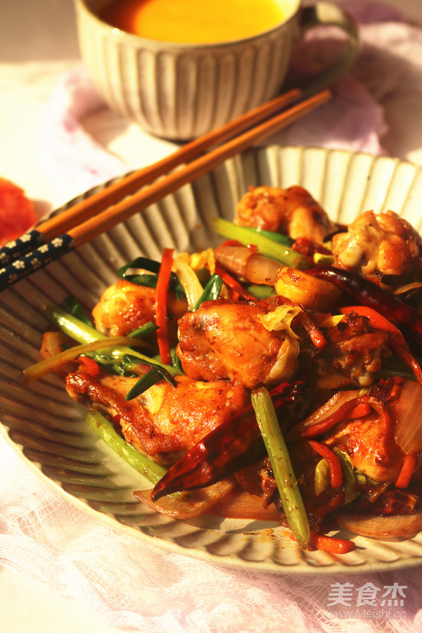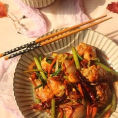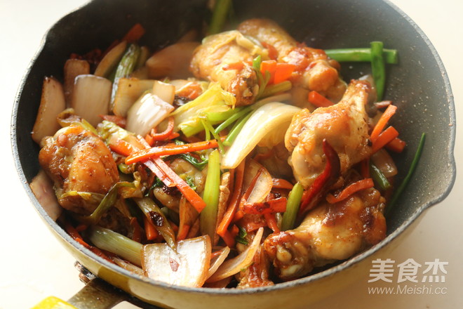 繼續翻炒1分鐘左右,加蔥段拌勻關火。