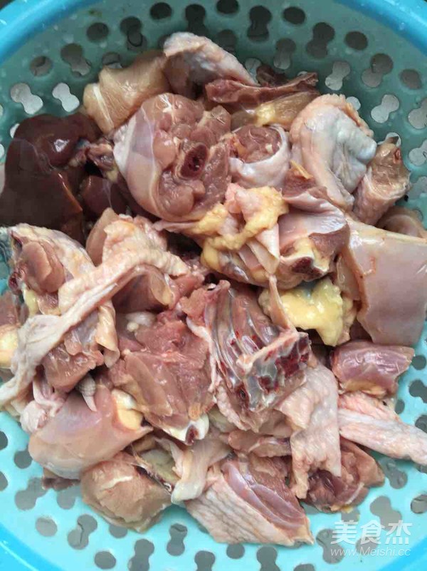 雞塊清洗干凈(這是整只雞的量,習慣一半用來燉一半紅燒)