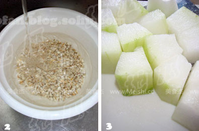 1.薏米篩洗干凈、冬瓜去皮后切大塊,生姜切成片,大蔥斜切成小段備用