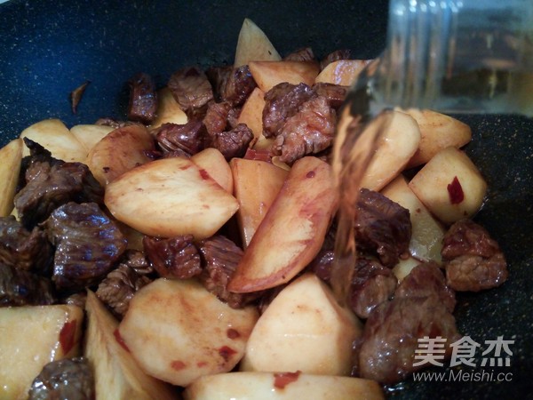 6.再放土豆翻炒幾下,加生抽5勺,