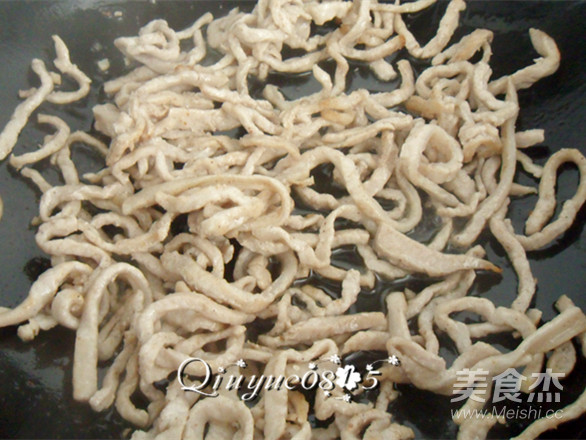 油熱六七分時(shí),放入肉絲炒至變色(可用筷子來回拔動(dòng))出鍋備用