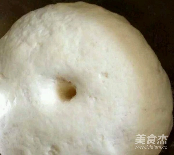 面粉加糖、酵母、泡打粉混合均勻,加入溫水活成光滑的面團,蓋上保鮮膜發酵。
