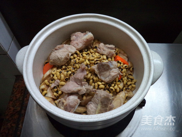 加入紅蘿卜塊、眉豆、焯過水的豬骨頭