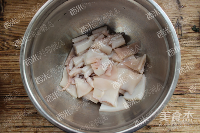 魷魚殺好,去內臟,去牙齒,扒掉表面那層皮。