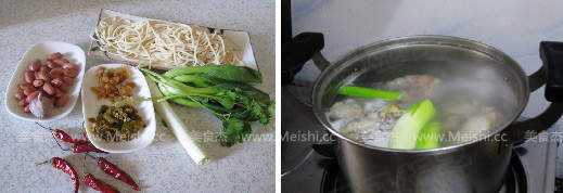 2.豬骨加入水、蔥、姜小火煮至1小時