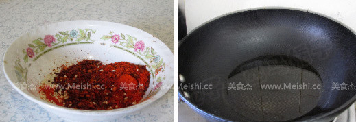 5.將熱油澆在辣椒碗中,攪拌均勻即成油辣子
