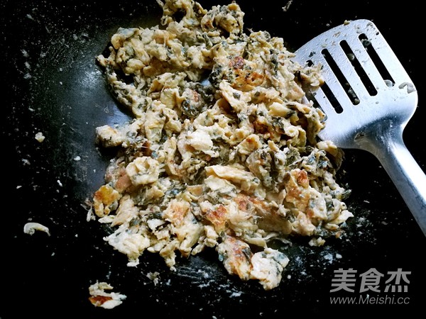 用鏟子翻動炒至蛋液微黃,定型即可出鍋