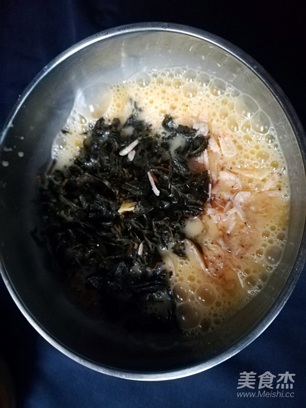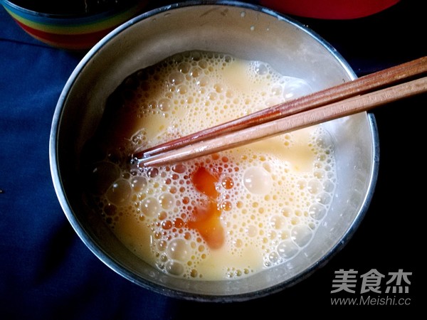 蛋液里加料酒可以去腥味,因為香椿和蝦米都是咸的菜里就不用加鹽了