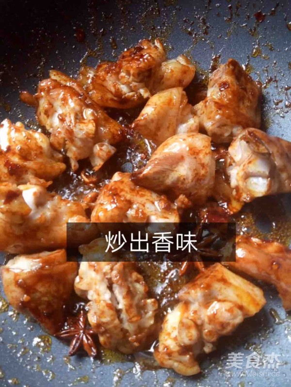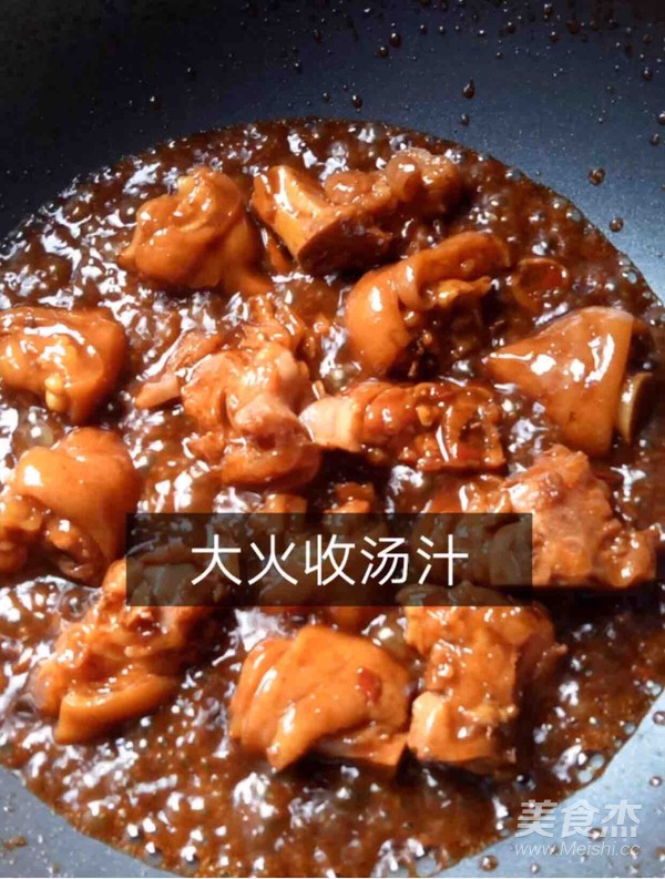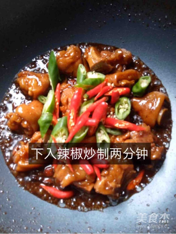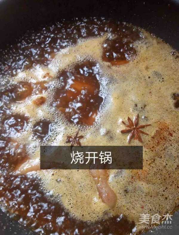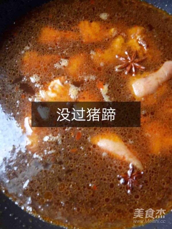 下豬蹄炒香 加入紅油豆瓣醬 蠔油 老抽 醬油,炒出香味.