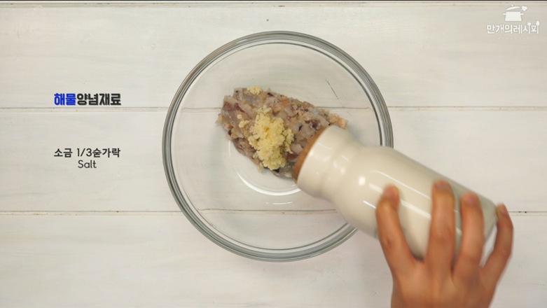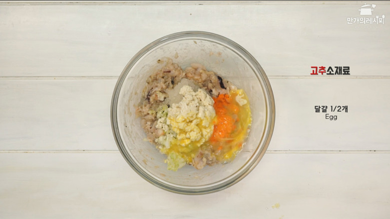 將辣椒餡放入腌好的海鮮中,攪拌。