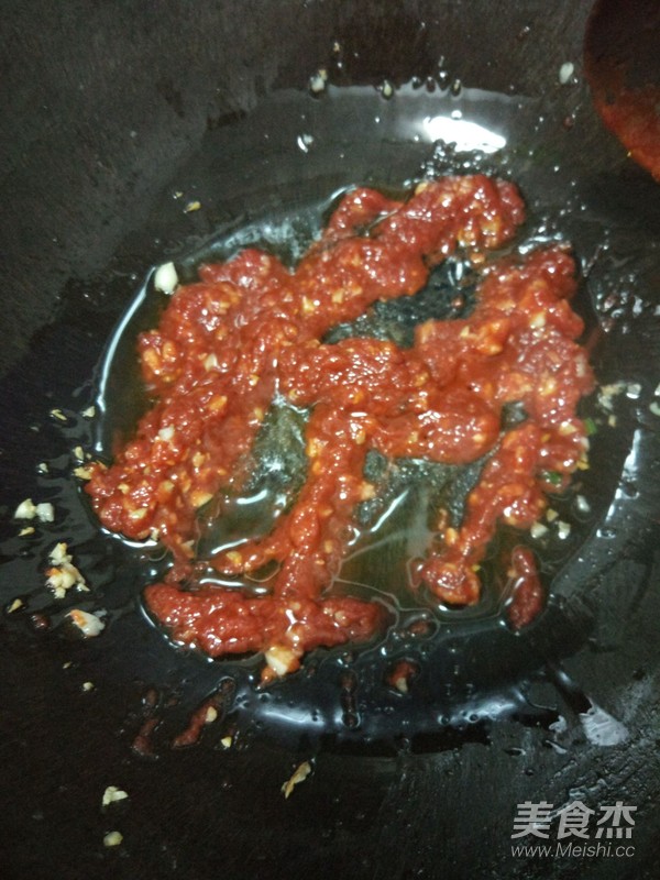 9.下入足量豆瓣醬煸香。