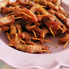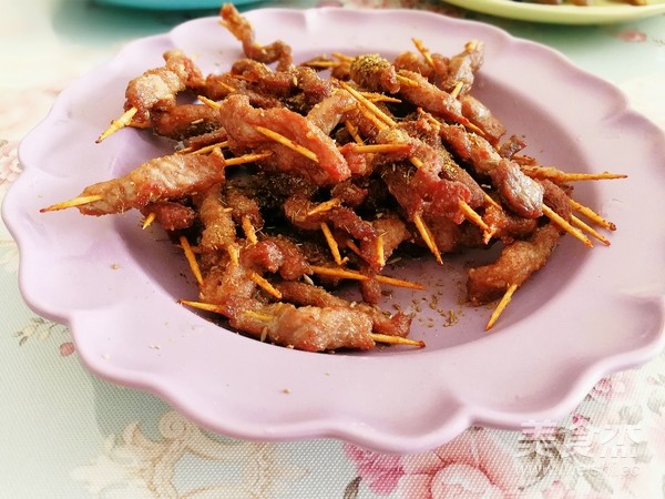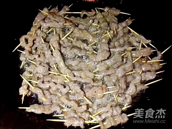 鍋中做油,待油溫八成熱放入牙簽肉炸制,出鍋后撒入孜然即可