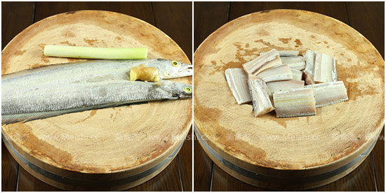 2.帶魚去鱗和鰭,去鱗我的方法是找個鋼絲球,肚子里掏了沖干凈,頭剪下來扔掉,清洗干凈后切段