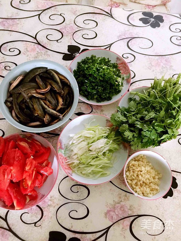 2.泥鰍洗凈后(用洗菜籃瀝干水分)放料酒、少量食鹽拌勻腌15-30分左右(也可加入點啤酒、味極鮮)。西紅柿洗凈切塊,小蔥、蒜切末,大蔥、姜切絲,香菜隨意切長段。