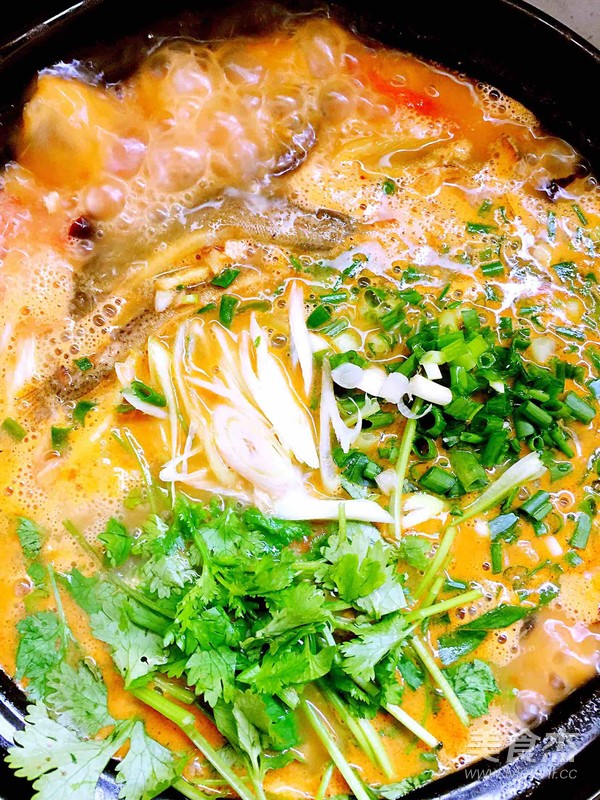 6.泥鰍熟透后(嘗鹽味是否需要再添加)加入大蔥絲、小蔥花、香菜。放少量芝麻油和雞精,關火開吃。