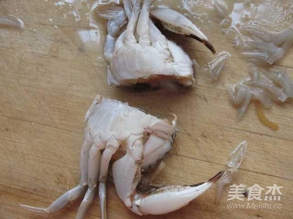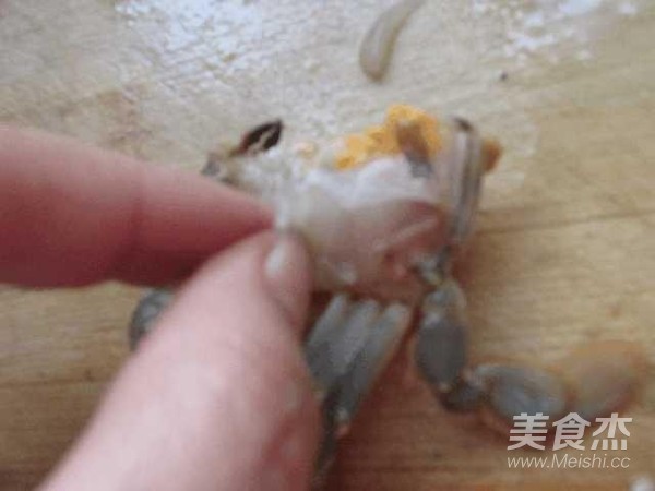 把河蟹洗刷干凈,蟹掩用刀切掉