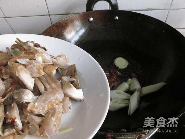 蔥姜切塊,鍋里放油,放蔥姜爆香,加入花椒和干辣椒