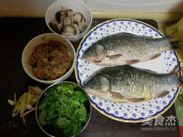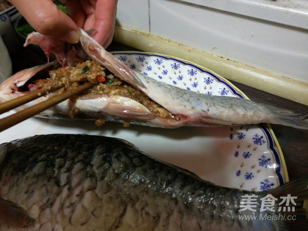 鯽魚洗凈后去除鱗和內(nèi)臟,然后將肉餡放入魚腹中