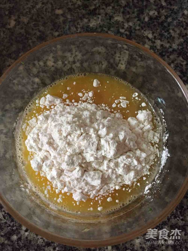 放入面粉,朝一個方向攪拌均勻